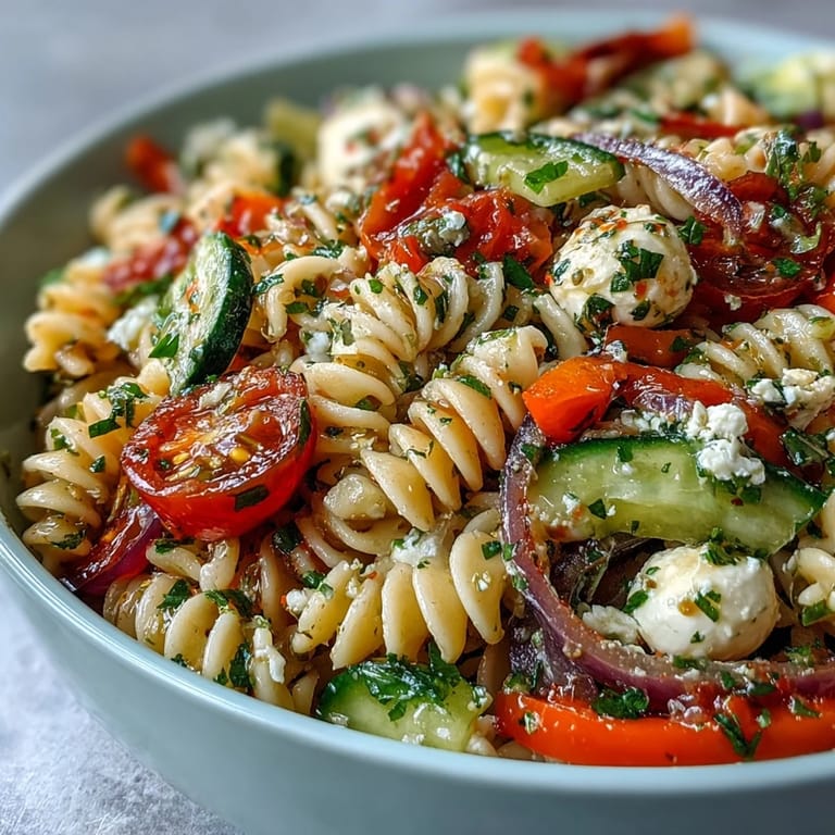 Save to Pinterest There’s something so satisfying about the sizzle of pasta hitting a bowl right as it cools and the waft of bright, herby dressing rising up to meet you. The first time I threw together this colorful pasta salad, it was a blazing hot afternoon, and I had one eye on the clock and the other on a kitchen full of half-used veggies. It wasn’t planned, but with each quick chop and toss, my mood shifted from frazzled to genuinely delighted. The snap of cucumbers and the cheerful colors made the kitchen feel more like summer, even before the first bite. Sometimes, a dish is born out of pure practicality—and ends up a favorite for life.