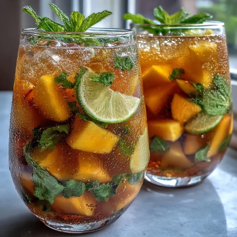 Save to Pinterest Last summer, my neighbor showed up at our backyard gathering with a pitcher of something golden and vibrant that stopped everyone mid-conversation. She'd been experimenting with fruit combinations all week, she explained, trying to capture that perfect balance between sweet and refreshing without any alcohol. One sip and I understood why she'd been so determined—the mango and peach melted together like they were made for this exact moment. I asked for the recipe that night, and now it's become my go-to when friends arrive thirsty on hot afternoons.