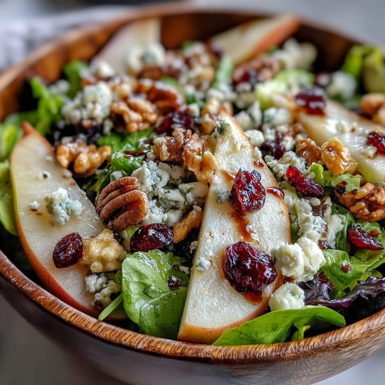 Save to Pinterest There's something about the moment when you slice into a perfectly ripe pear and it releases that sweet, floral perfume into your kitchen—I learned to make this salad on a crisp October afternoon when my neighbor brought over a bag of pears from her garden and a wedge of creamy Gorgonzola she'd been saving. We tossed them together on a whim, toasted some walnuts in a dry pan while we talked, and suddenly we had something far better than the sum of its parts. The combination of sweet fruit, tangy cheese, and buttery nuts became my go-to when I needed something that felt both elegant and effortless.