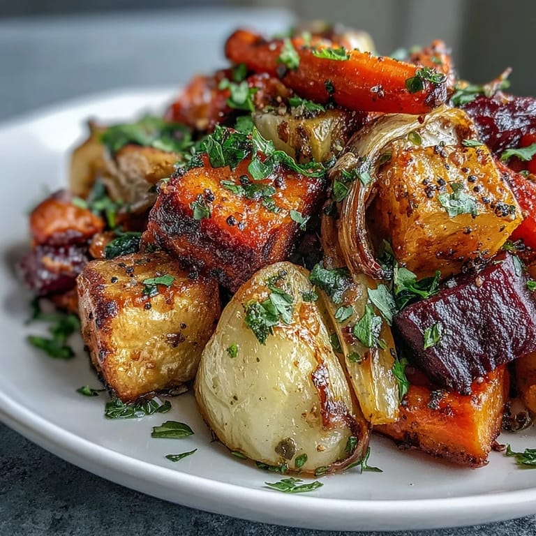 Save to Pinterest My kitchen smelled like caramelized sweetness the afternoon I discovered that roasting root vegetables was less about precision and more about letting the oven do the heavy lifting. A friend had dropped off a CSA box overflowing with beets, parsnips, and carrots, and instead of making soup like I always did, I tossed everything with olive oil and herbs out of sheer curiosity. Forty minutes later, the edges had turned mahogany gold, the insides softened into natural candy, and I realized I'd been overthinking vegetable sides my whole life.