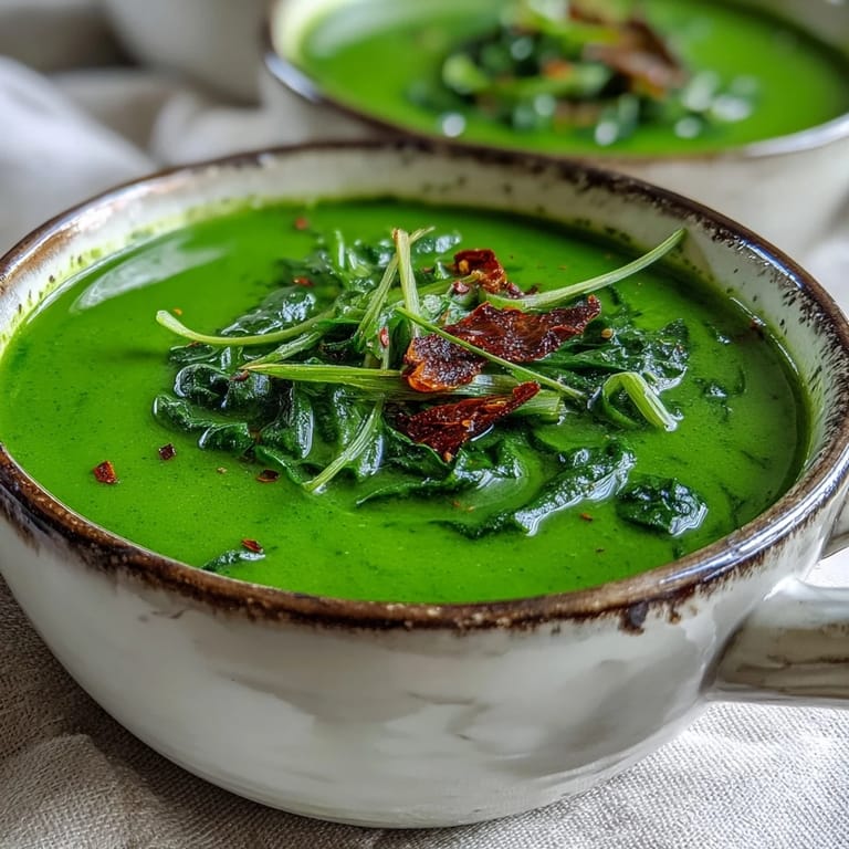 Save to Pinterest There's something about the smell of lemongrass hitting hot oil that makes you stop whatever you're doing and just breathe it in. I discovered this soup on a gray afternoon when my kitchen felt too quiet, and I wanted to fill it with something alive and green. The first spoonful was a revelation—creamy, bright, and somehow both grounding and lifting at the same time, like the soup knew exactly what my mood needed.